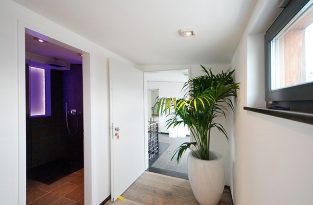Die gesamte Ausstattung ist eine Klasse für sich: So haben die Bäder echte Schiefer-Böden und -Wände. In den Treppenbereichen und in den Bädern schaffen ausgeklügelte LED-Lichtkonzepte eine sehr harmonische Atmosphäre. Weitere Details sind etwa die Fußbodenheizung, Eichenparkettfußboden in den Wohnbereichen und maritime Elemente wie Bullaugen und Gangway.