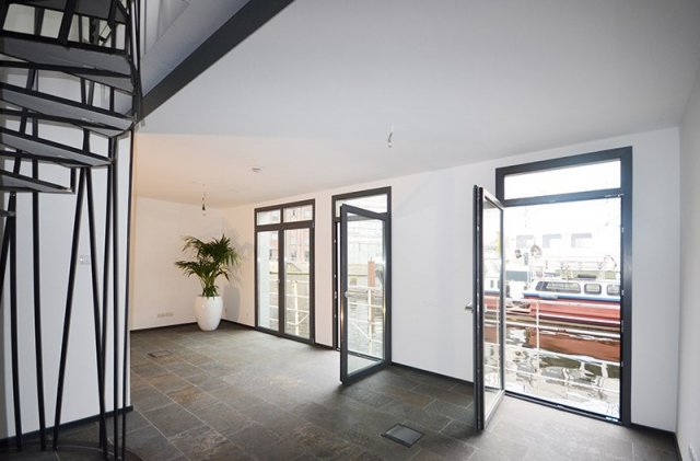 Diese individuell vom Architekten gestaltete Mobilie ist komplett neu aufgebaut gemäß dem aktuellen Stand der Technik. Das schwimmende Haus bietet eine Fläche von 300 Quadratmetern, verteilt auf zwei Ebenen mit insgesamt 8 Zimmern. Zwei Balkone auf der oberen Ebene, ausgelegt mit Bangkiraiholz, ermöglichen einen „Rundum-Austritt“.